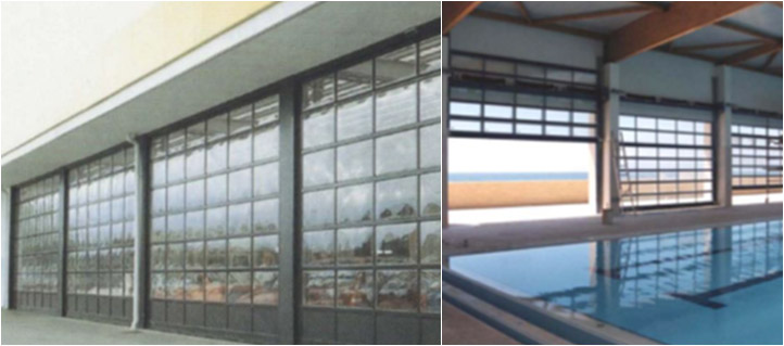 PORTA SECCIONADA ALUMINIO E VIDRO | Fabricada em painéis de alumínio anodizado ou lacado com vidros simples, duplos ou triplo, em acrílico, policarbonato